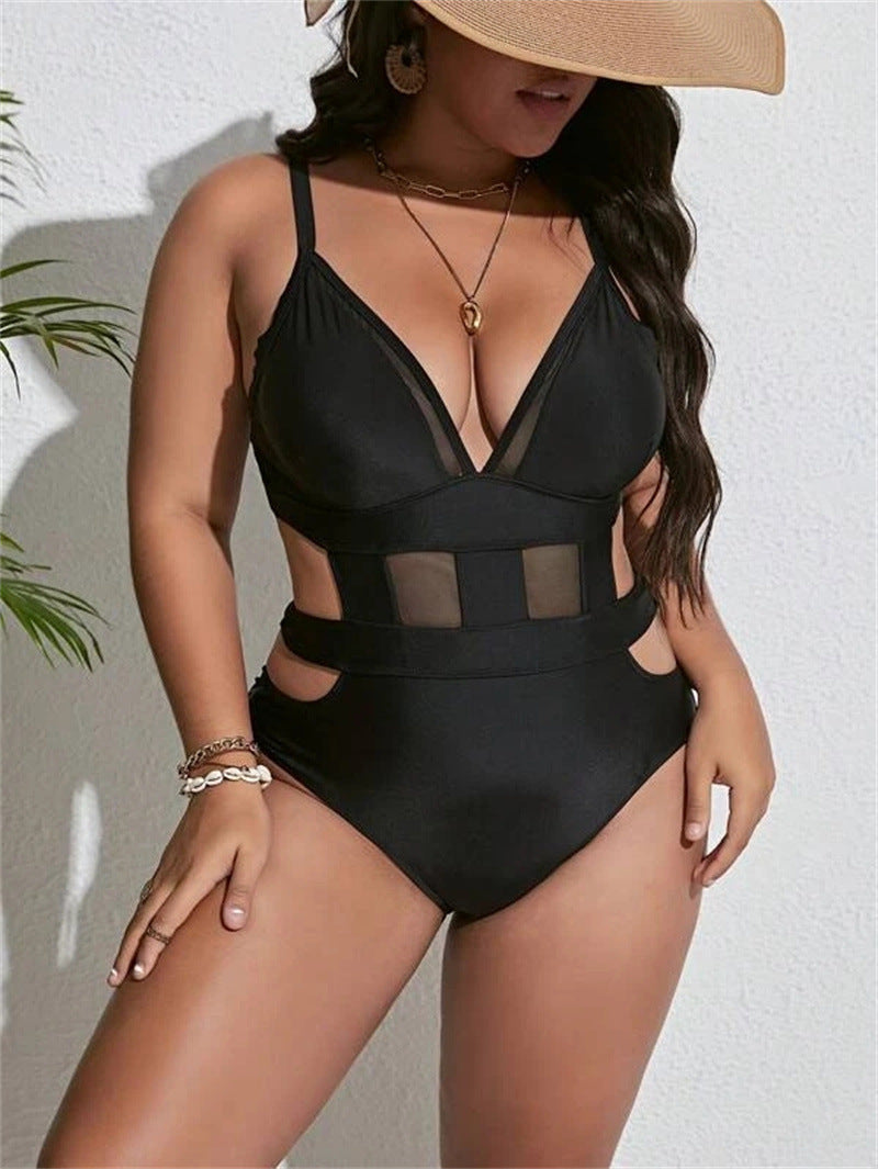 Plus Size One-Piece Swimsuit Women's Sexy Sports Pool Hollow Swimsuit