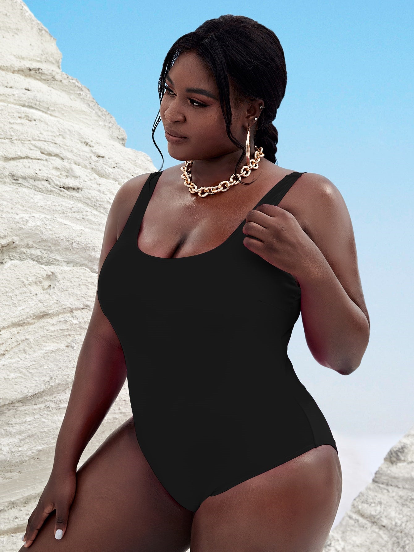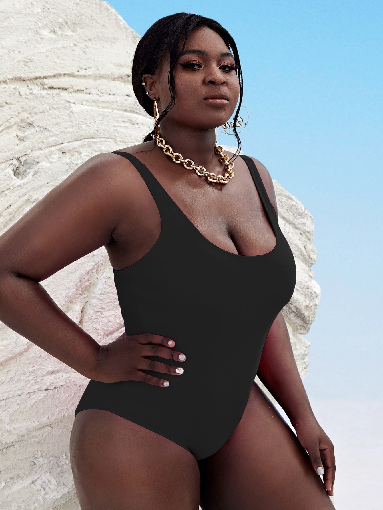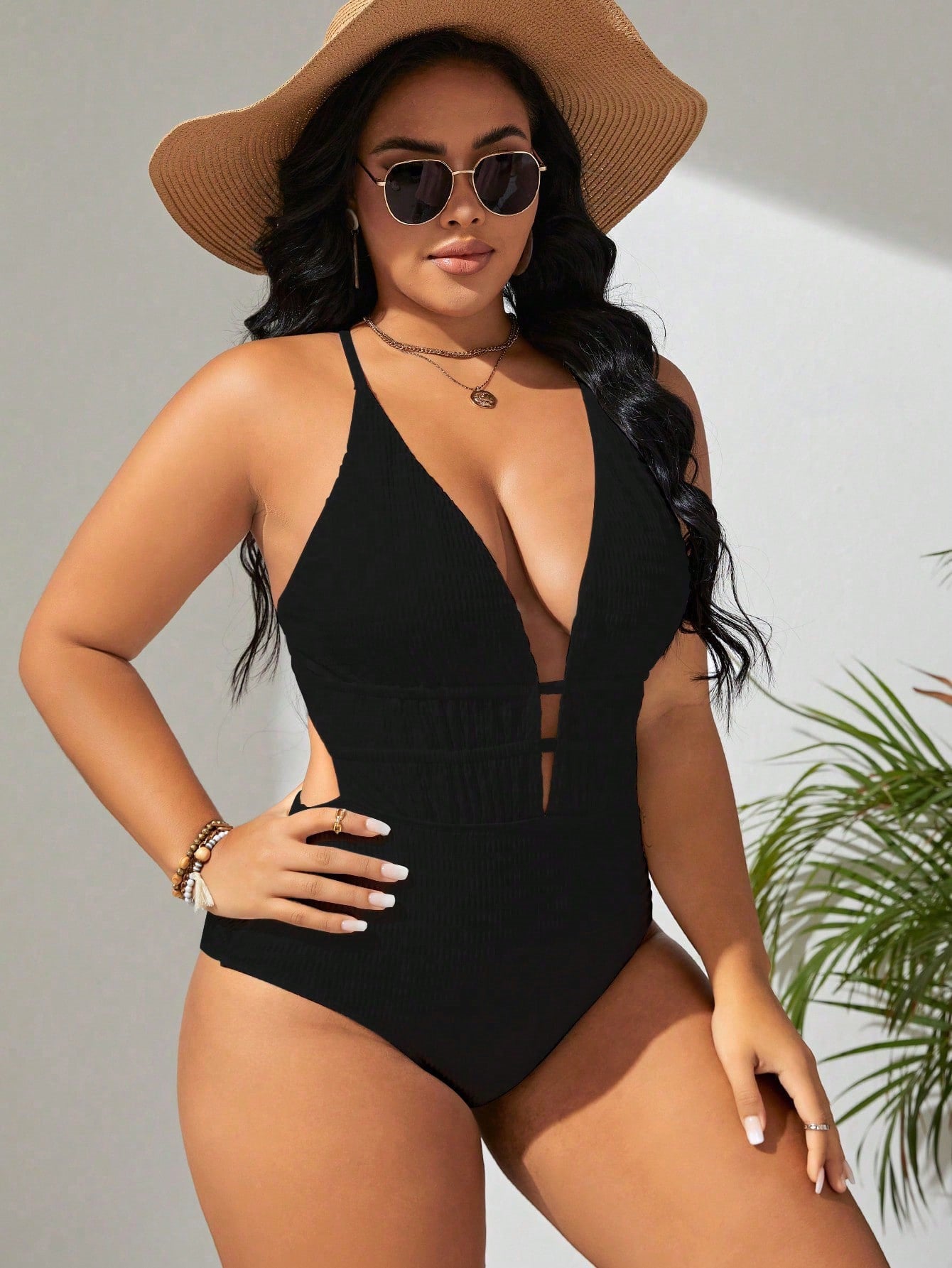 Black Straps Hollow One-Piece Swimsuit