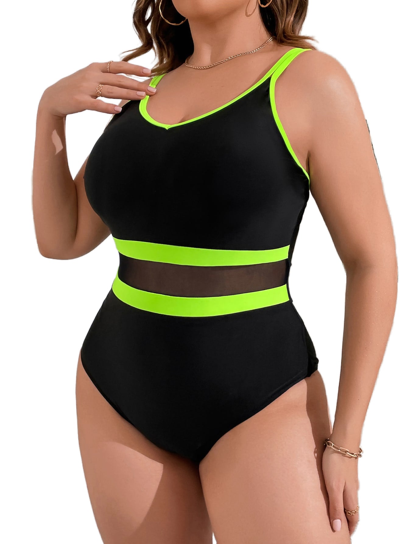 Mesh Insert Cut Out Waist One-Piece Swimsuit