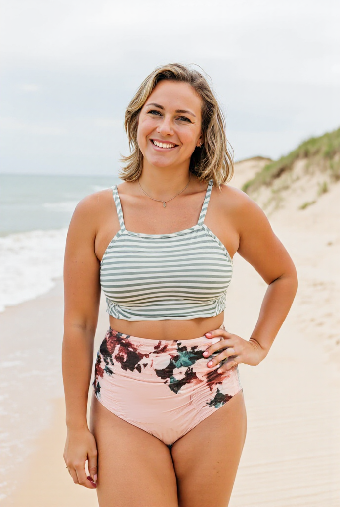 High-Waist Colorblock Tuscany Floral Bikini Set