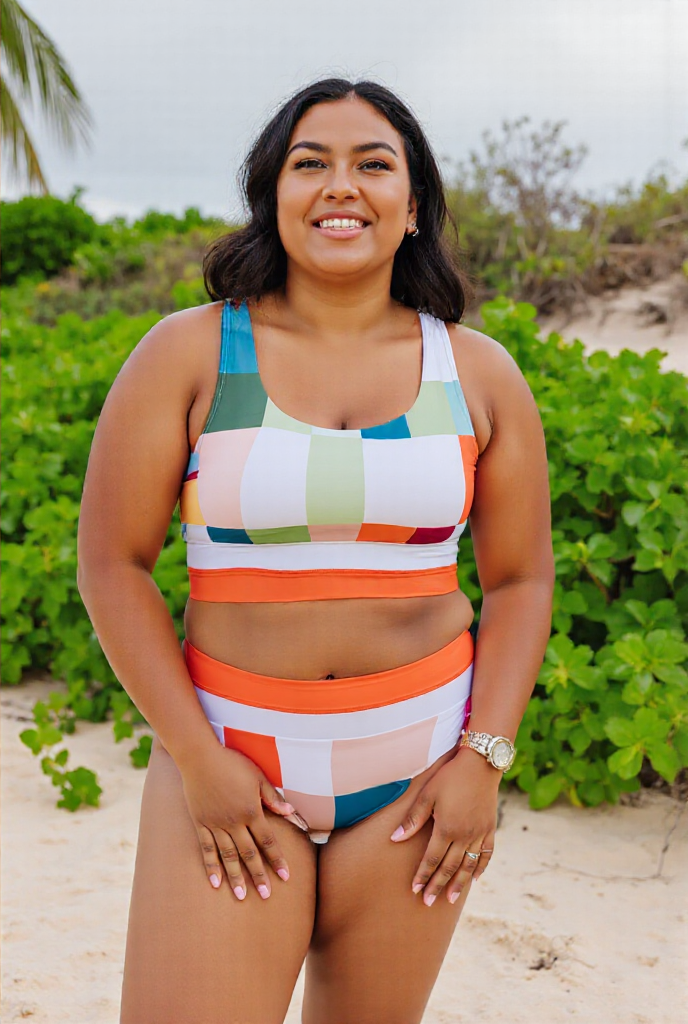 High-Waist Makani Colorblock Reef Break Crop Bikini Set