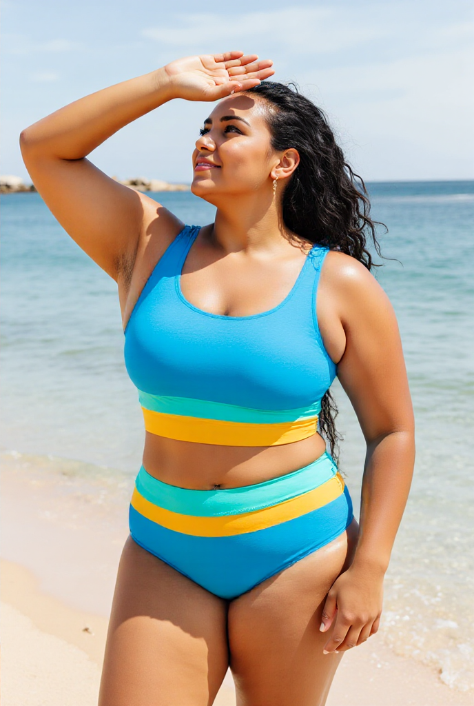 High-Waist Colorblock Marine Cut Back Crop Bikini Set