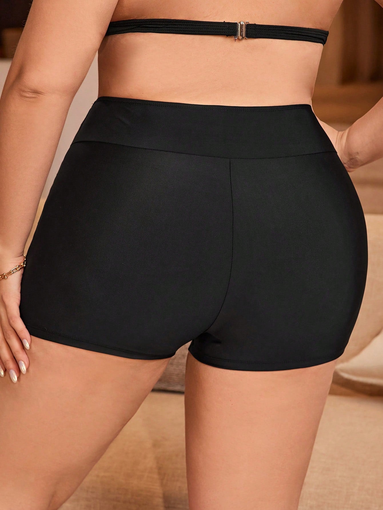 Plus Size Swimsuit Women's Shorts Cross Boxer Split Bikini Bottoms Swimsuit V-Shaped