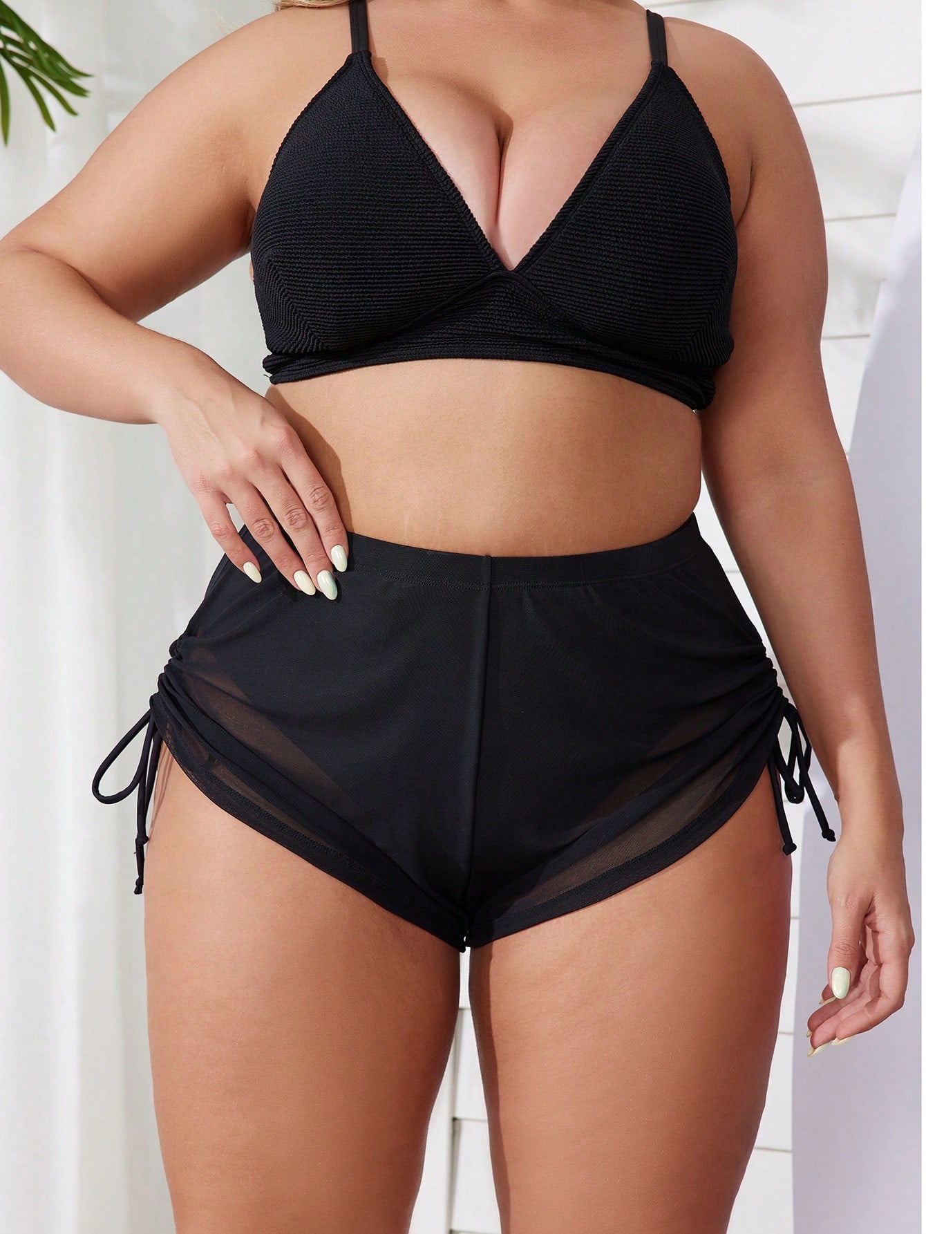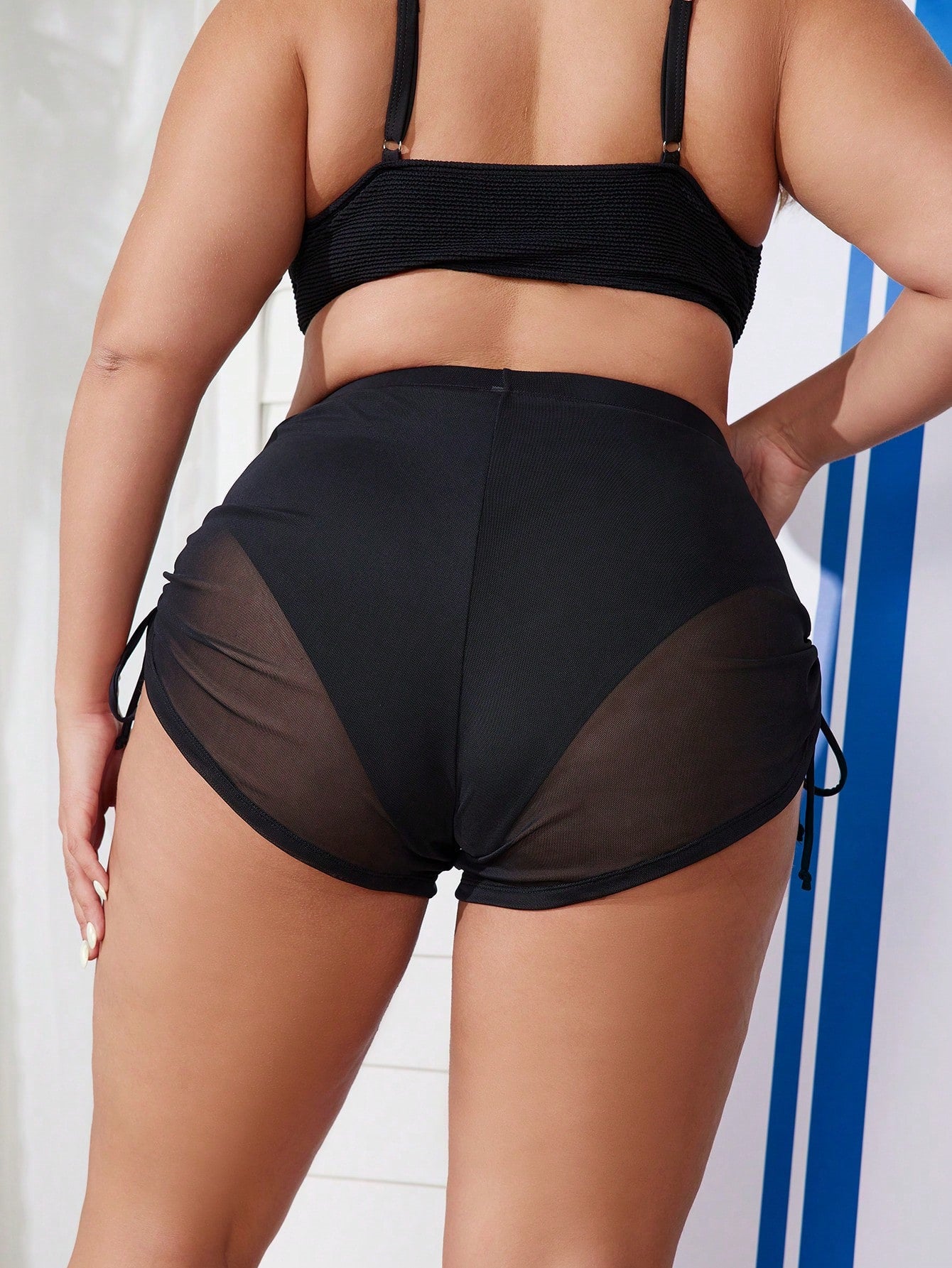 Plus Size Swimsuit Drawstring Women's Shorts Mesh Beach Shorts Boxer Split Bikini Bottoms Swimsuit