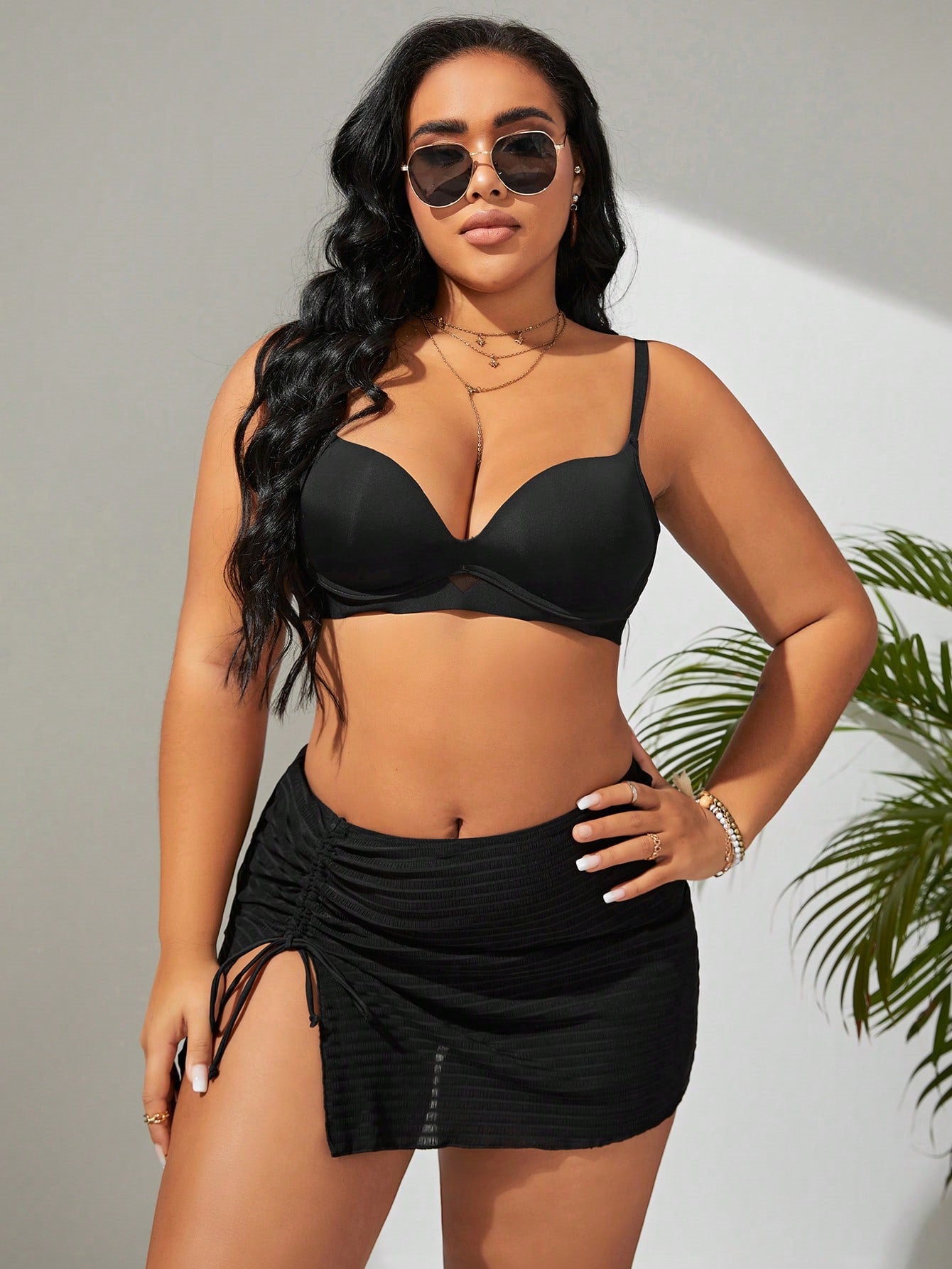 Plus Size Swimsuit Women's Swim Trunks Classic Drawstring Split Bikini Bottoms Skirt Bottoms