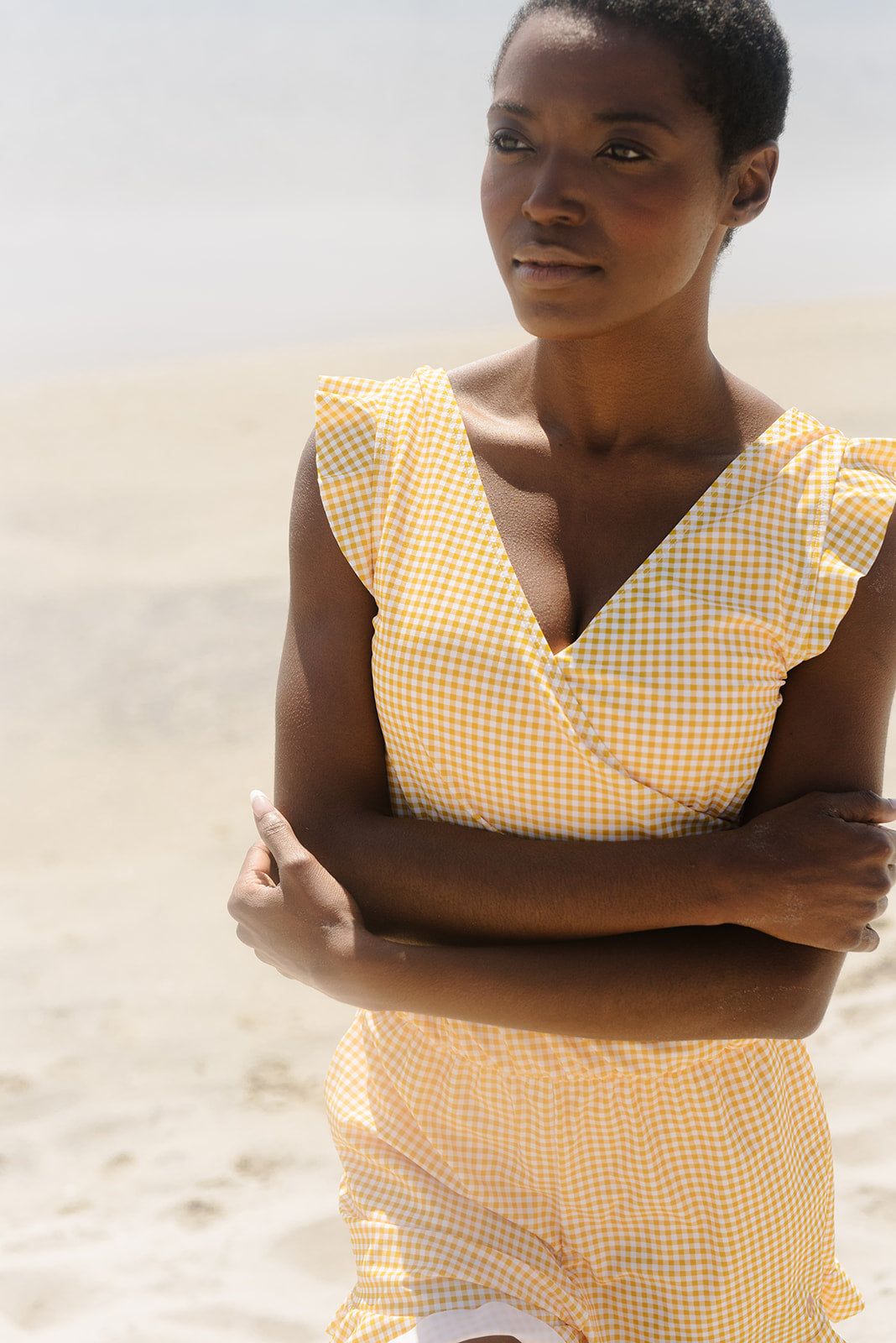 Marigold Gingham Ginger Swim Romper
