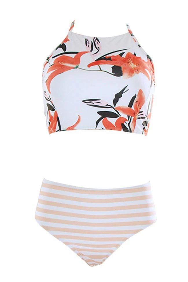 High-Waist Colorful Floral Printed String Bikini Set
