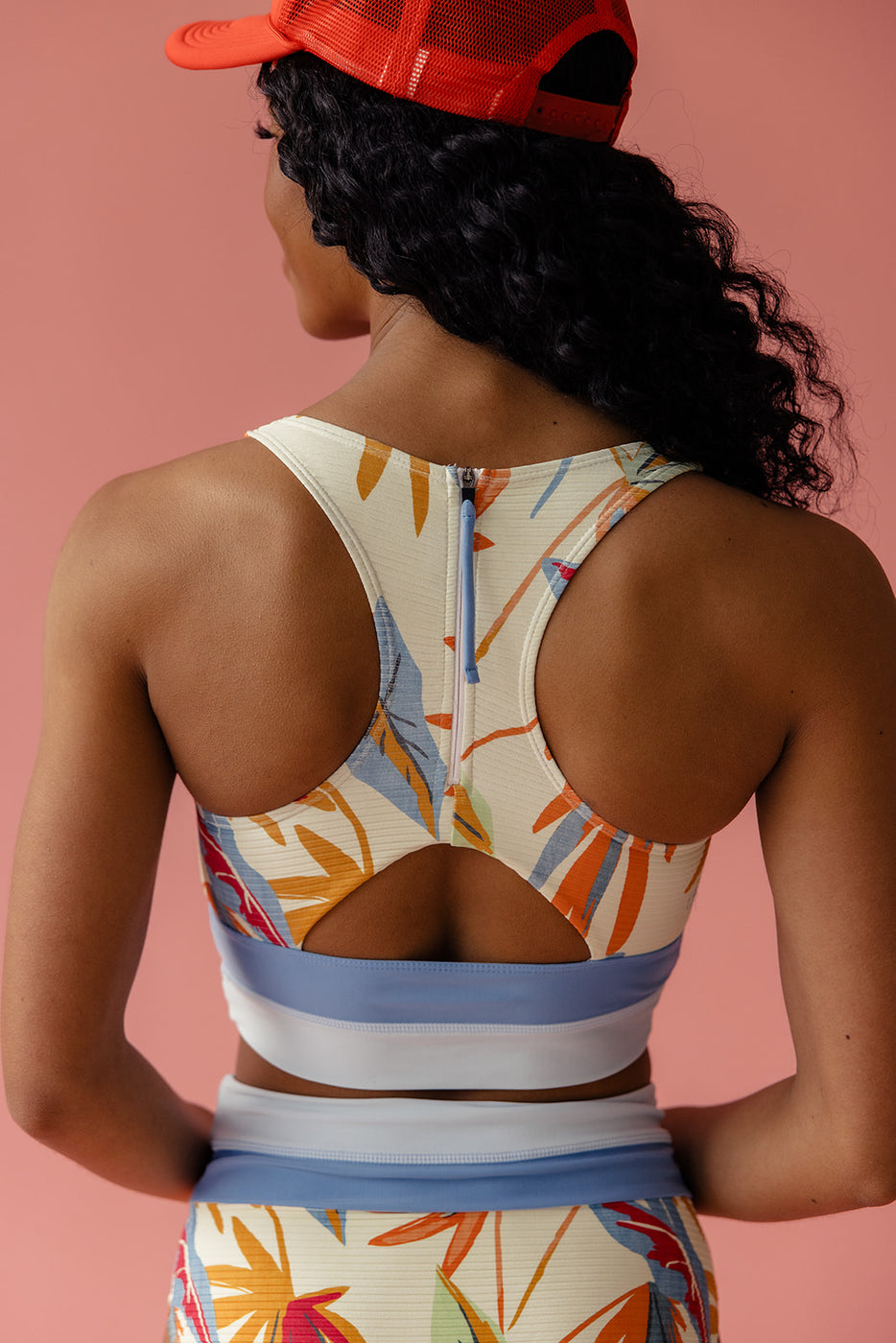 The Eden Cut Back Crop is so good! It gives you max support like your fave sports bra, so you can move freely. The quick-drying fabric keeps you comfy, and the racerback style with a zipper is super cool. The scoop neck is flattering, and the wide double band gives extra hold. Plus, that bold print? Total showstopper.