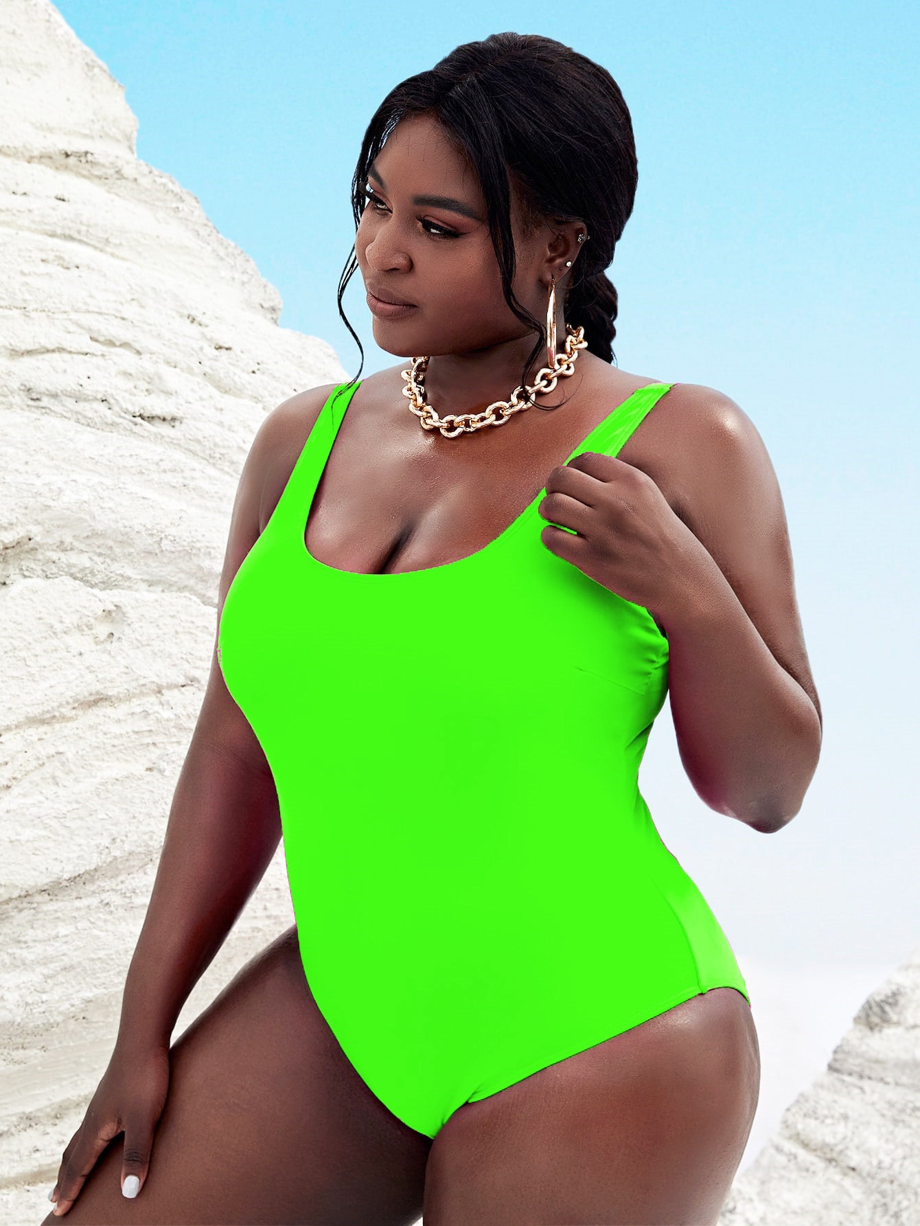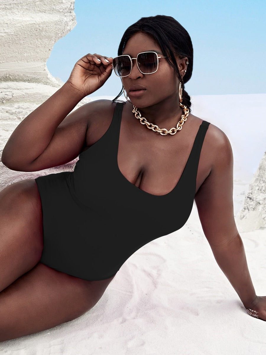 Fluorescent Round Neck One-Piece Swimsuit