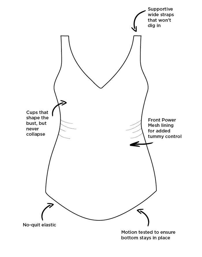 • Fully lined swimsuit with Power Mesh tummy-control front lining
