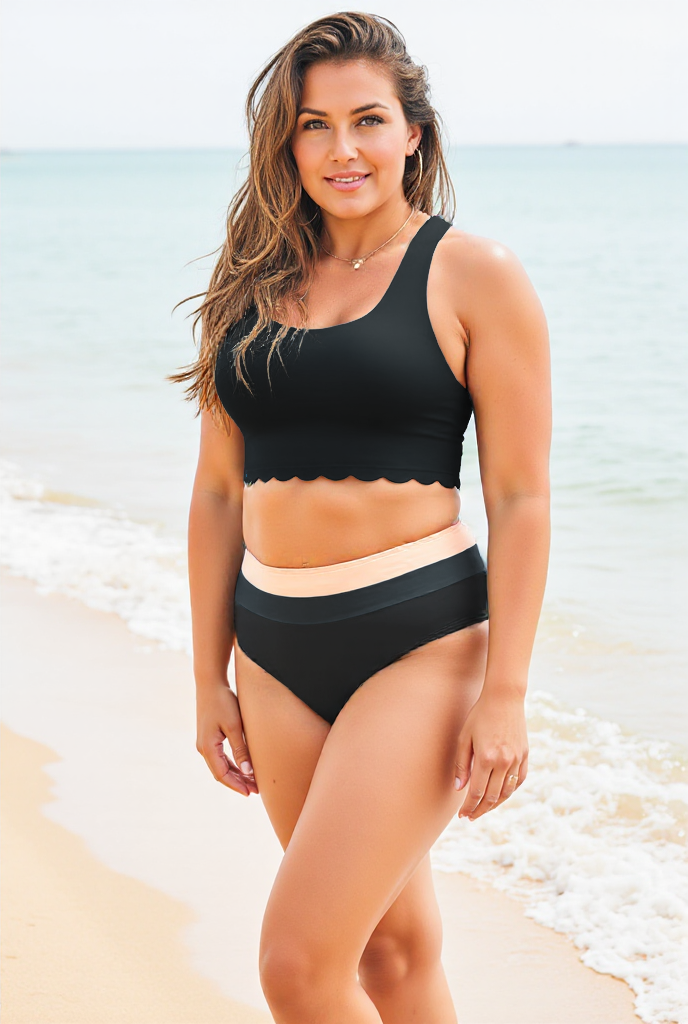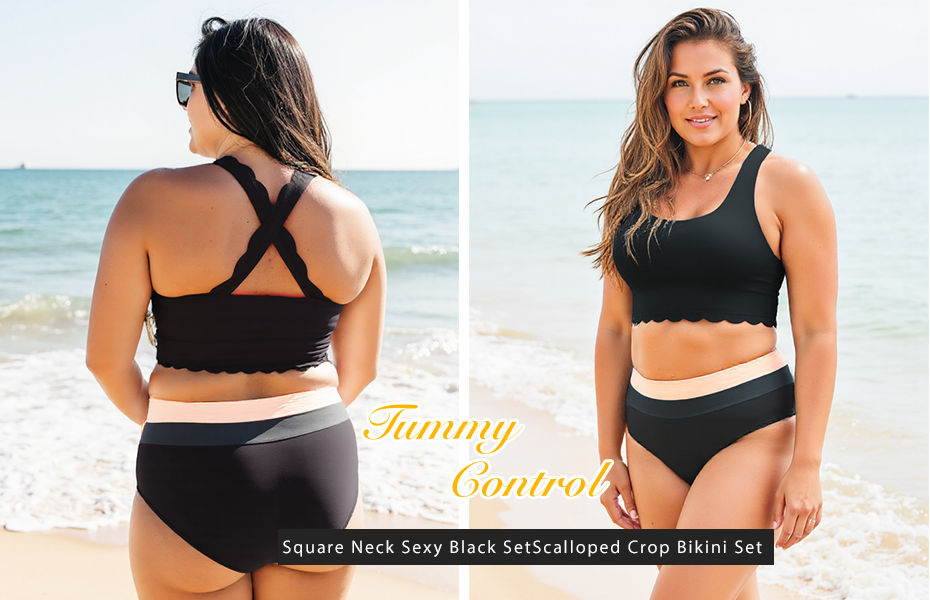 High-Waist Square Neck Sexy Black SetScalloped Crop Bikini Set