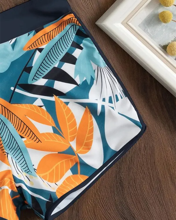 High Neck Sexy Leaf Print High Waist Halter Bikini Set