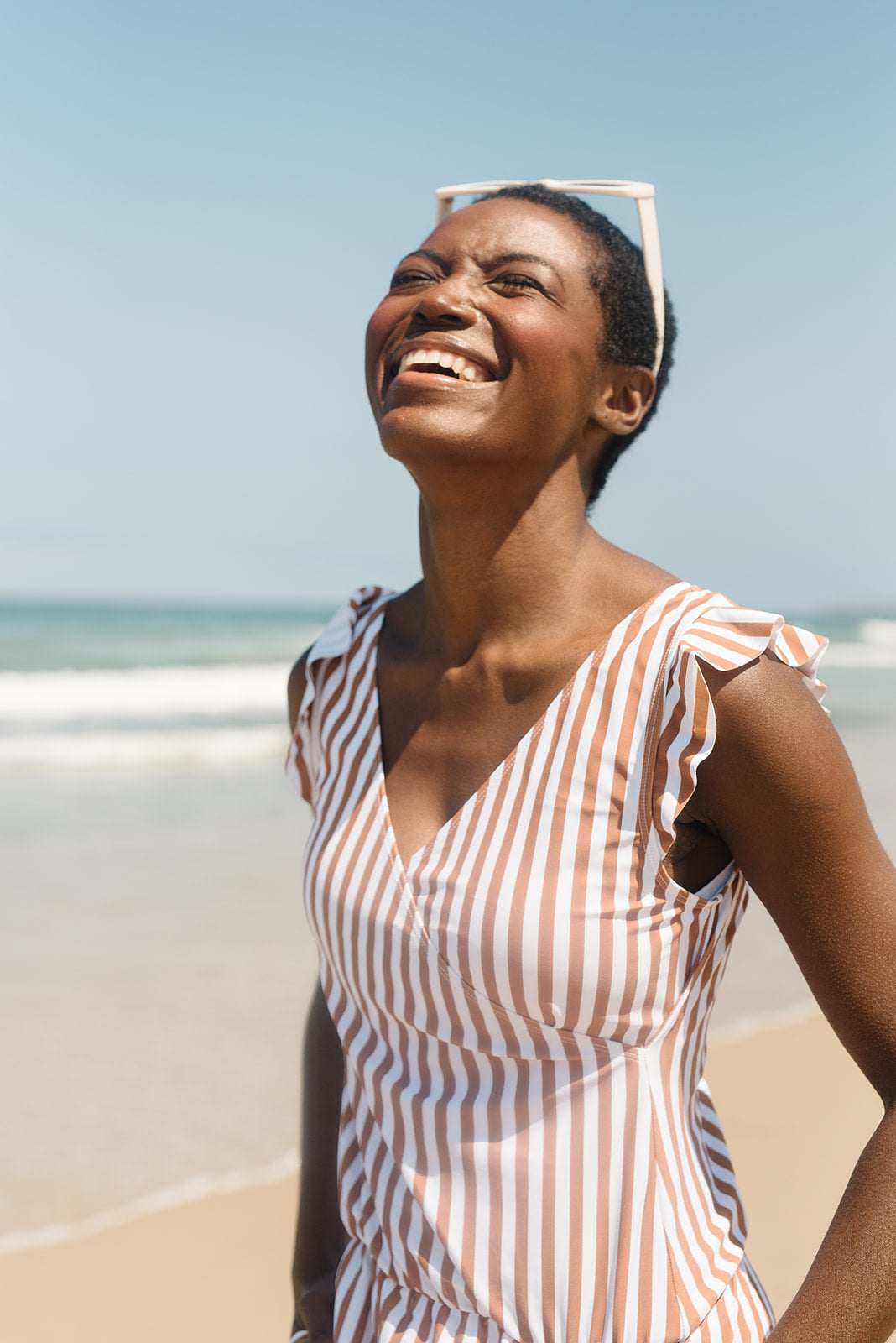 Ruffled and wrapped, this nursing-friendly swim romper combines a flattering fit + feminine style with functional features both inside and out. Need longer shorts? Try our basil top and salty shorts for the look of a romper that’s actually separates!