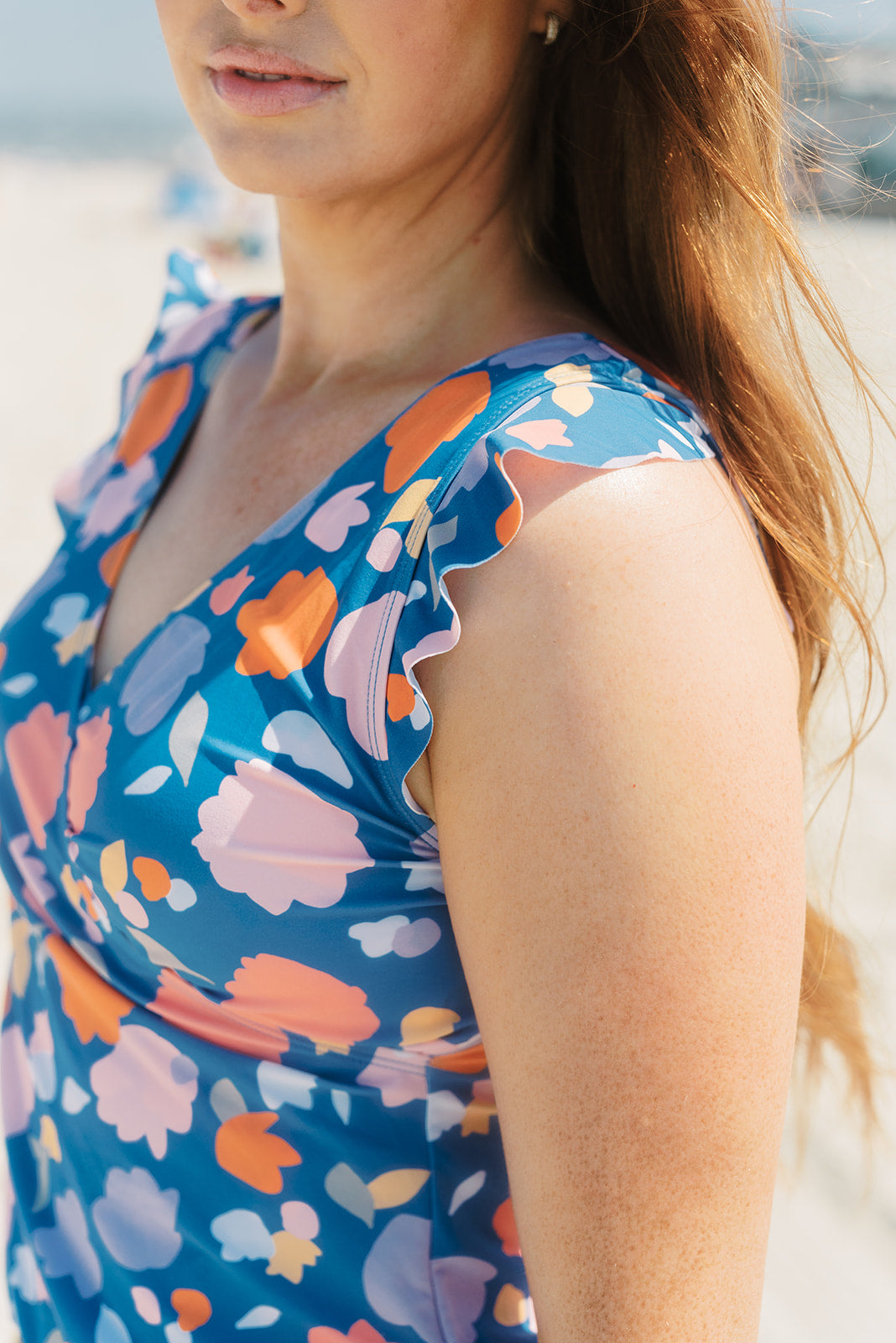 Ruffled and wrapped, this nursing-friendly swim romper combines a flattering fit + feminine style with functional features both inside and out. Need longer shorts? Try our basil top and salty shorts for the look of a romper that’s actually separates!