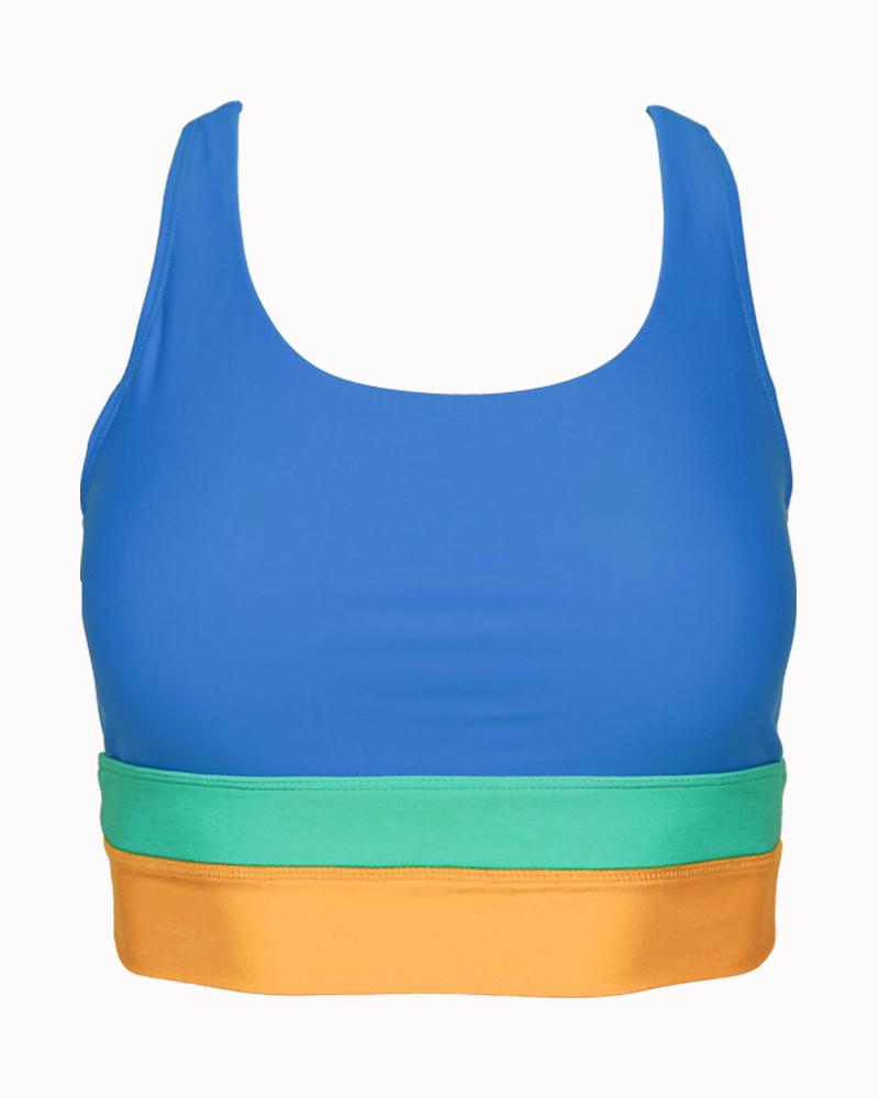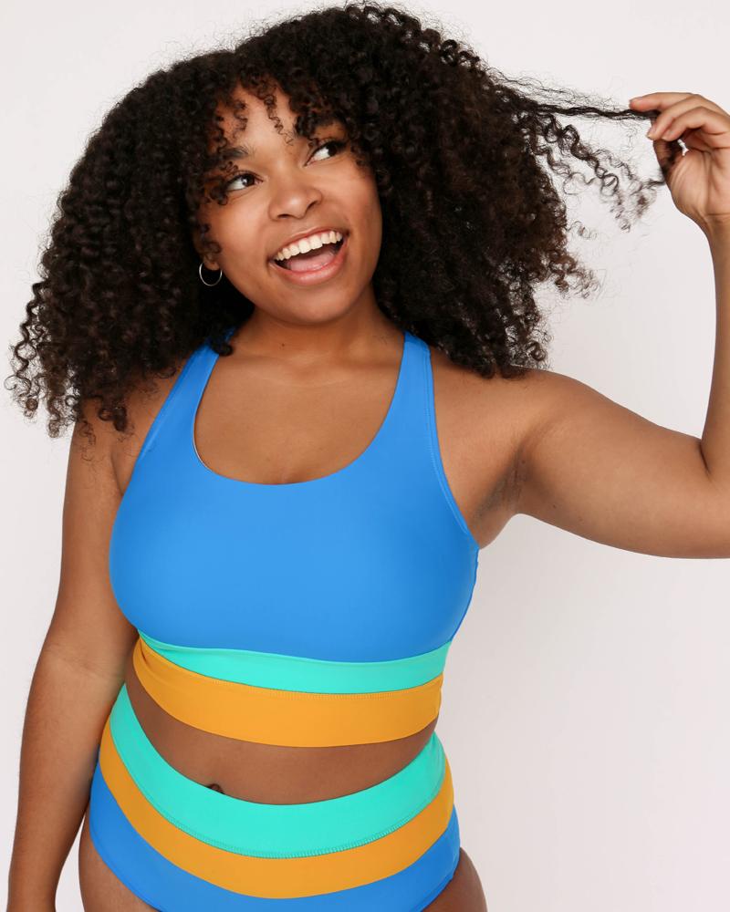 High-Waist Colorblock Marine Cut Back Crop Bikini Set