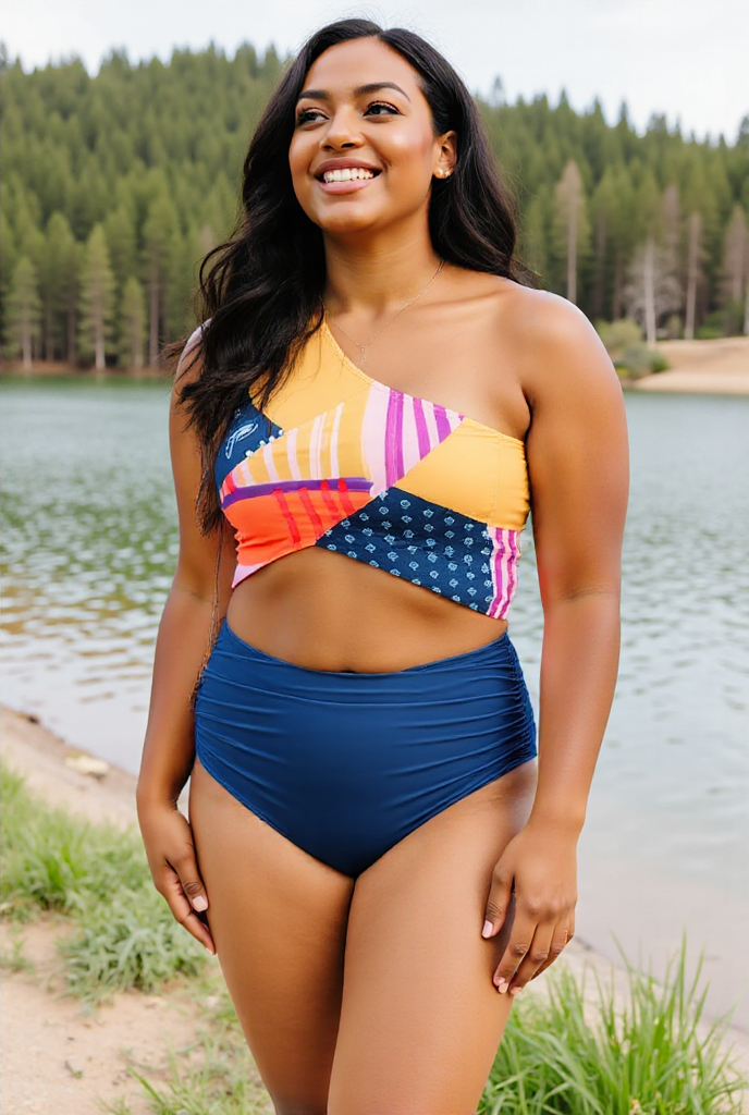 One Shoulder Colorful Patchwork Crop Bikini Set