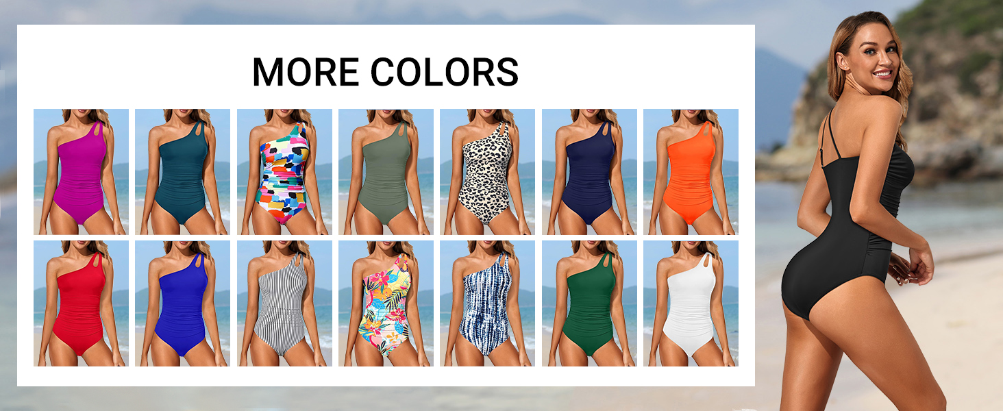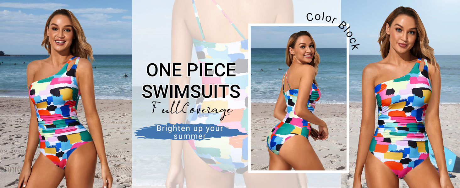 One Shoulder One Piece Swimsuit for Women Tummy Control Bathing Suits