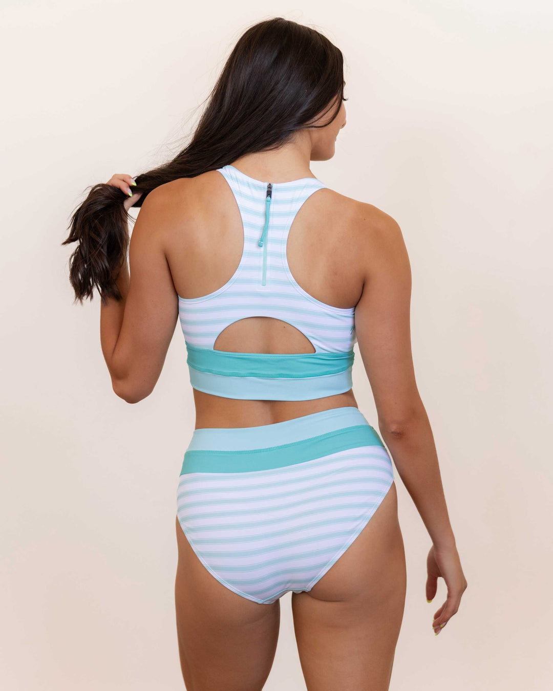 Our best-selling Cut Back Swim Crop offers the comfort and support of your favorite sports bra, making it the perfect hybrid for both yoga class and outdoor adventures. With a stylish, functional design, this top provides maximum support for all your activities—whether you're hitting the waves, hiking trails, or stretching it out on the mat.