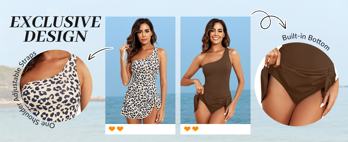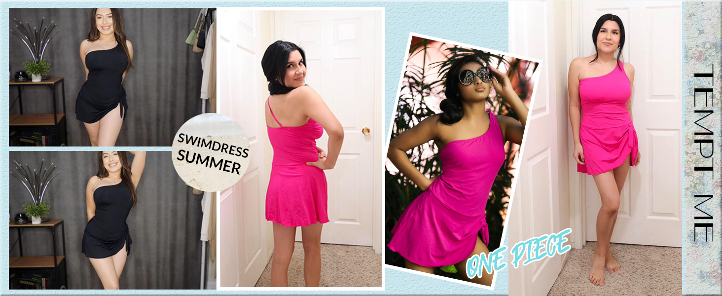 Women One Piece Swim Dress One Shoulder Swimsuit with Skirt