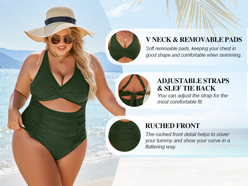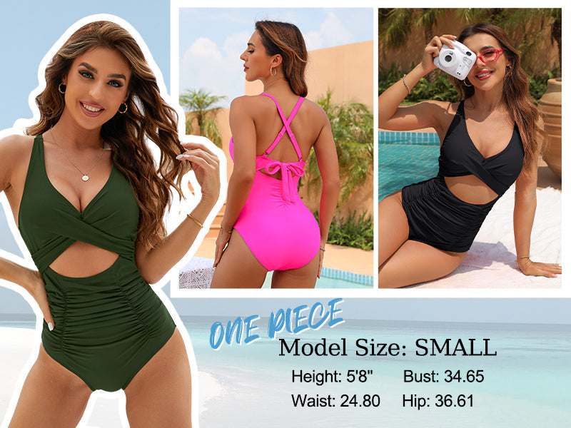 • Feature: Womens Slimming swimsuits feature with a sexy v neck, cutout design on front and back, adds a feminine style to this swimsuit. The adjustable spaghetti straps and criss cross self tie back are designed to adjust the swimsuit to the most comfortbale fit.